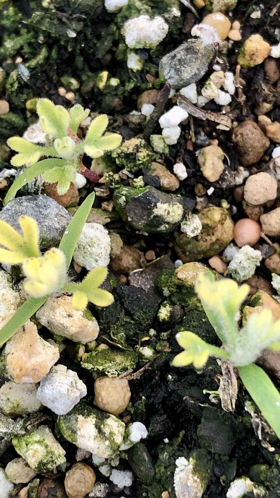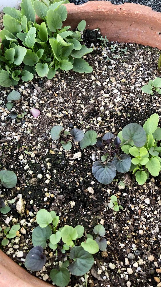 ⑤カサブランカの鉢にもビオラやパンダスミレが発芽しています🐼