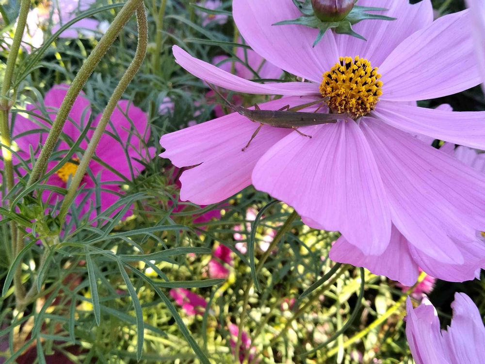 コスモスとバッタ
