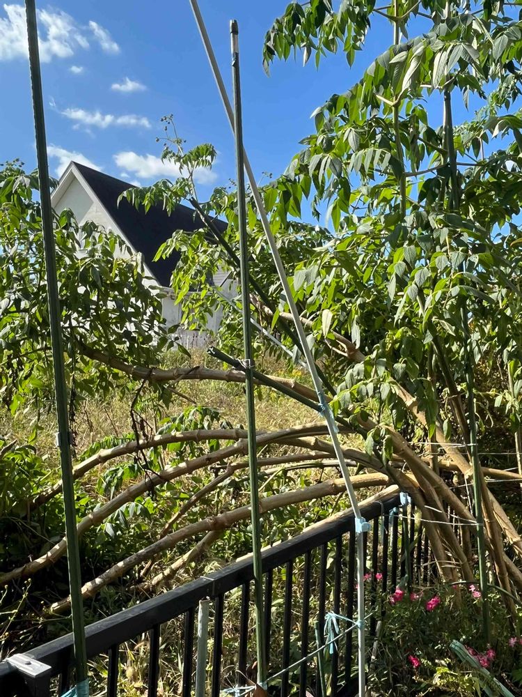 棚が倒れ植木鉢がバラバラになった,皇帝ダリアが倒れた,折れた太い幹のアップの投稿画像