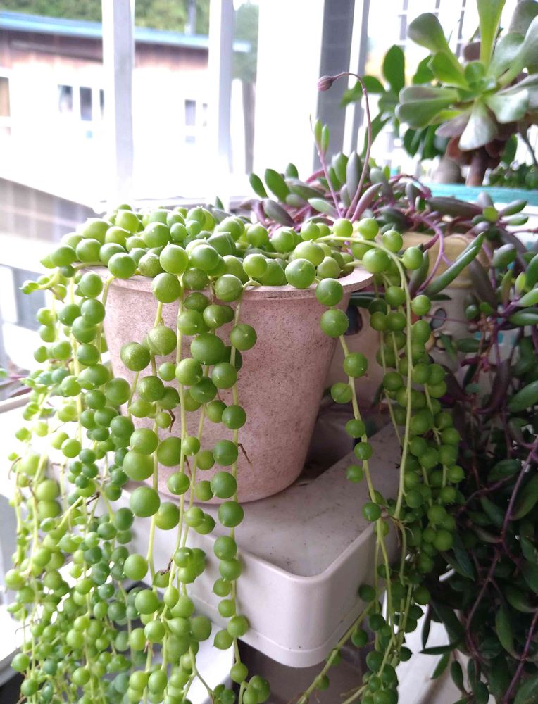 我が家のグリーンネックレスは夏に外に出しておいたら焼けてしまって😭瀕死の状態から1部助かりましたが、そこからなかなか大きくなりません💦
