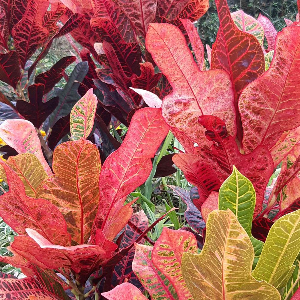 こちらは、先日お邪魔したデンパークの、カラフルな美しい葉っぱの変葉木のクロトンさんたちです。