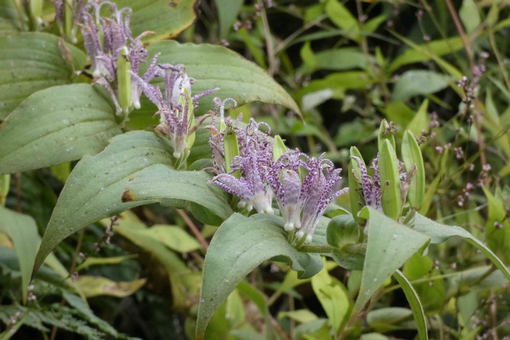 家のホトトギスは茎の先端に咲くものと、葉の脇に並んで咲くものが混じっているので、タイワンホトトギスとの交配の園芸種ですが、ご覧になったのは日本のホトトギスですね🎵