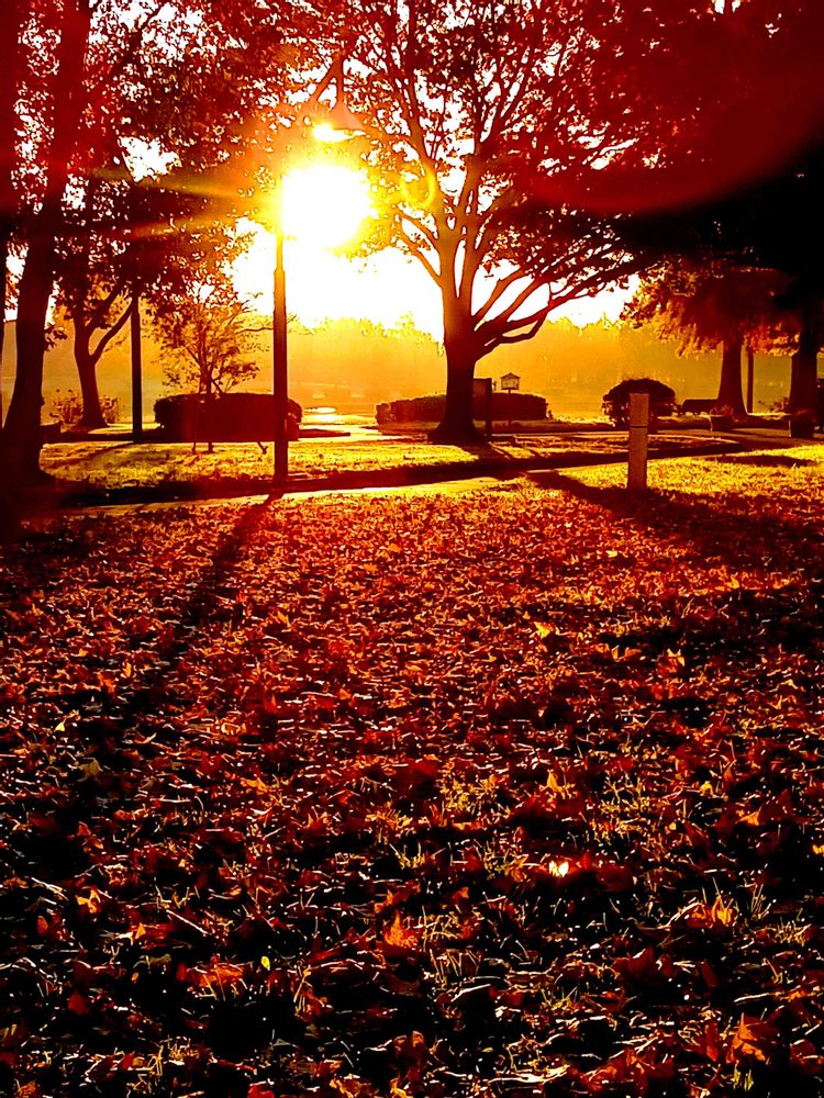 m&oさんの以前撮った写真から,晩秋の都立水元公園の朝陽,モミジバフウが朝陽で真っ赤にの投稿画像