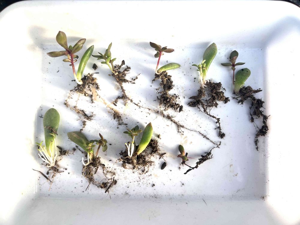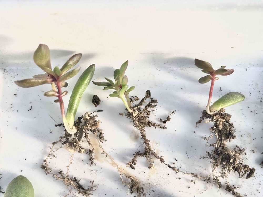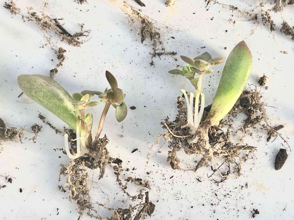 葉挿しは随分失敗しました、こんな発根状態の多肉さんはまるで経験なし😭