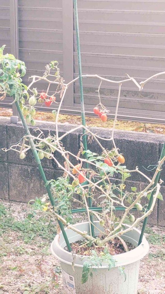 三枚目のプチトマトは違う種類の脇芽を挿したもので、こちらもまだまだ現役。