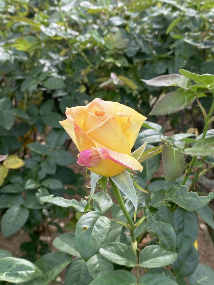 生田緑地ばら苑からもう一枚、天津乙女という日本のバラです。黄色とピンクのグラデーションが素敵です🤍