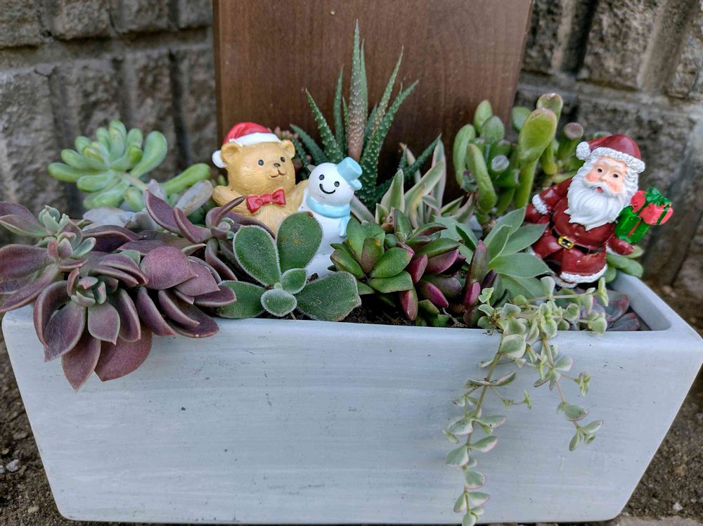 いつもコメントありがとう。多肉寄せ植え、難しそうで、なかなか重い腰が上がらなかったけど、やり始めたら、出来不出来はともかく、結構楽しめました(^_-)-☆。とりあえず、どんどん寄せて植えただけなんだけど、また気軽に寄せ直せばいいのかな…と❀( ⸝⸝•ᴗ•⸝⸝ )❀。安い多肉植物ばかりなので、ポイントはクリスマスのマスコット🎅です。