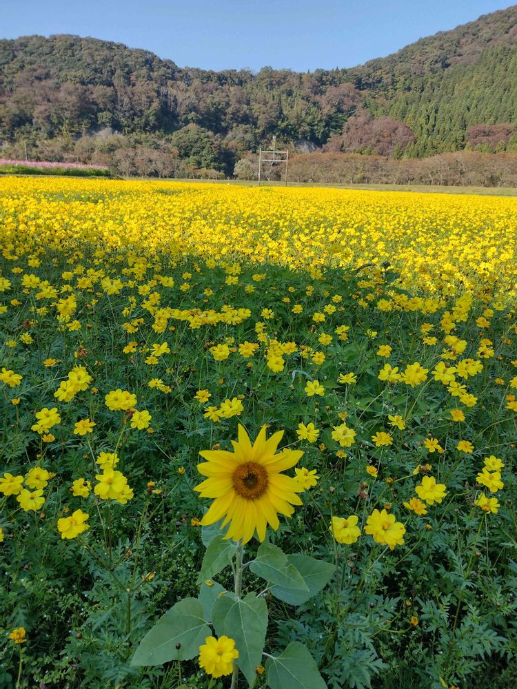 2枚目はひまわりの後ろに広がるコスモス畑🥰いちめん黄色一色💛🧡💛