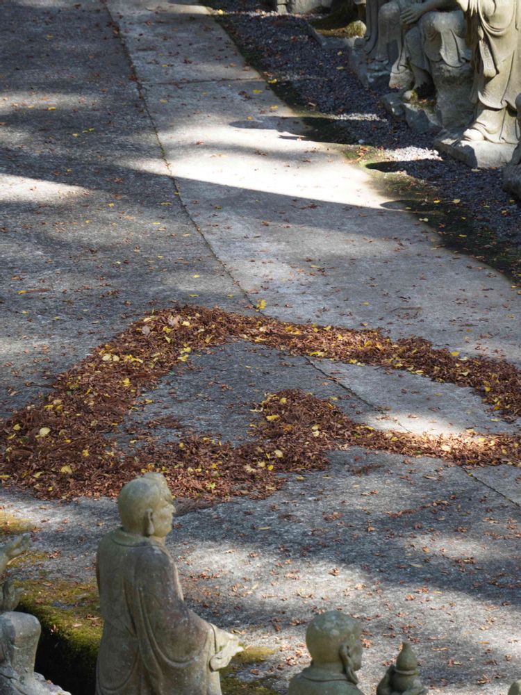 ♡型の落葉アートは、うんぺんじーの坊主(イケメン)さんの作品😂