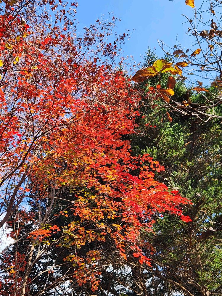 青空と紅葉🍁と黄色、緑••••このコントラストは、大好きなんです💓♥️❤️🎵