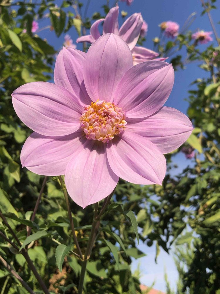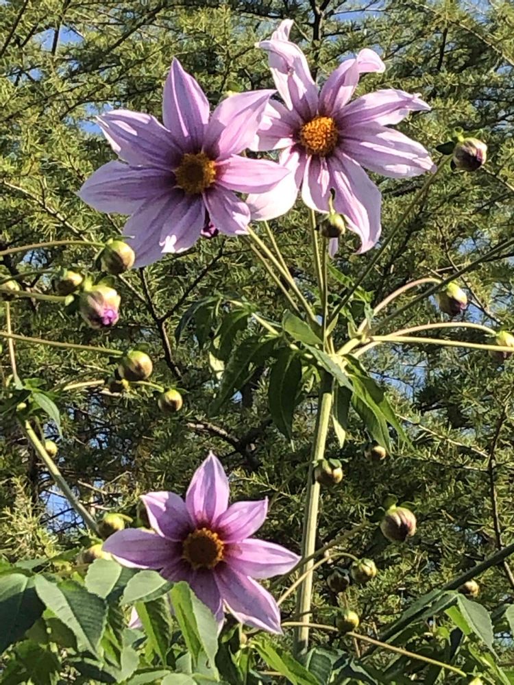 皇帝ダリアは皇帝らしく高いところにお花が咲きますので、スマホ📱のカメラも最大に拡大して、やっとこの大きさです。📸🌸🌿🌞💦