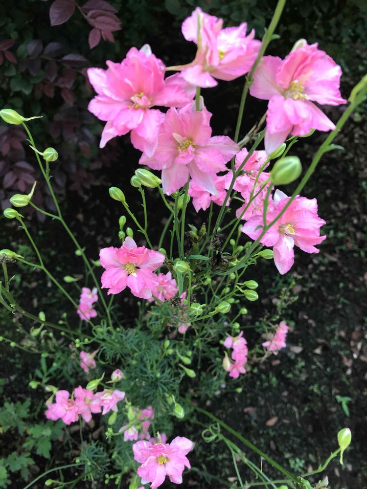 葉っぱはディルの様な細い葉で、5.60㎝あるでしょうか。。とっても可愛いピンクのお花です