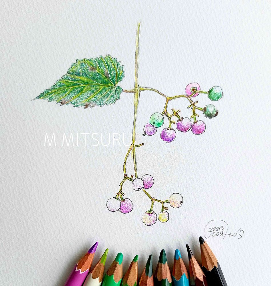 日に日に色が変わノブドウですが、綺麗な色を閉じ込められる絵はいいです。