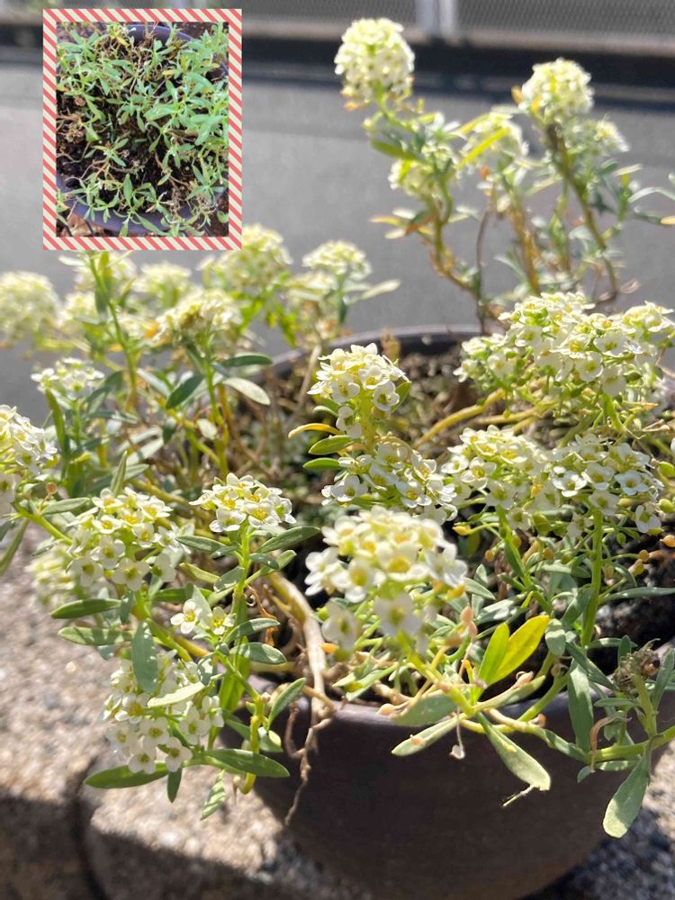 うちのスーパーアリッサムも、復活してきてお花が1つ。まりりんさんの頑張ったアリッサムさん達を見ていると、希望が持てます🥰