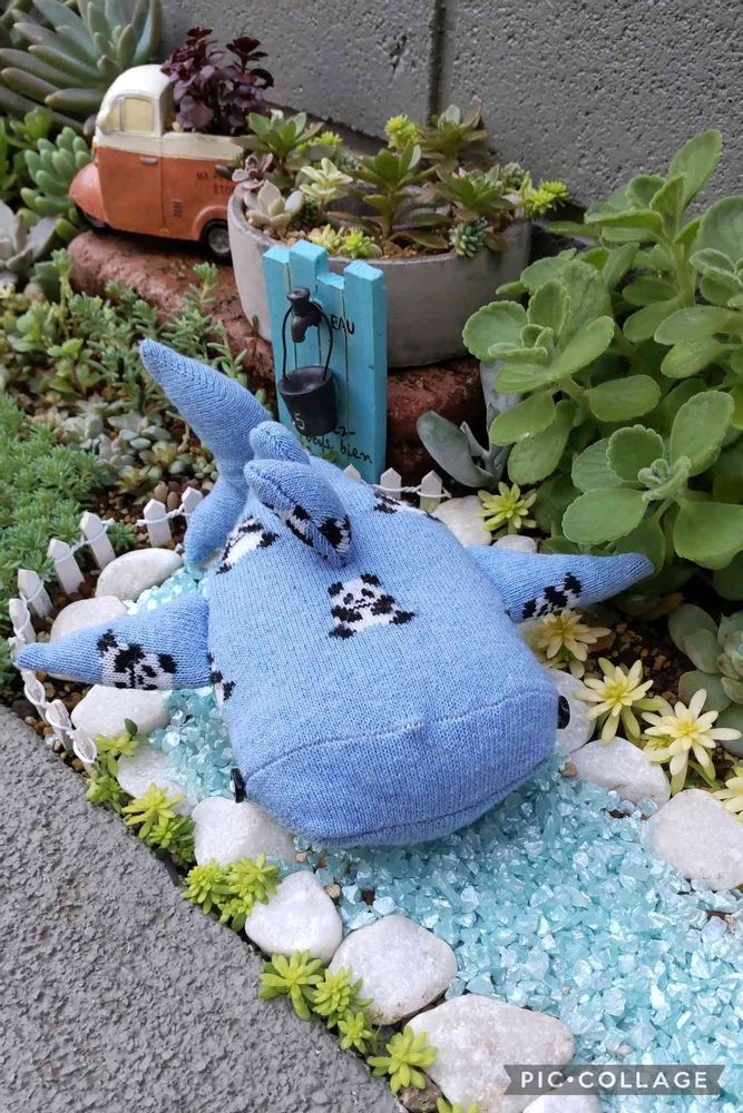 3枚目は、まつぴよさんのジンベイザメ。我が家の池では、ちょっと無理がありますね😅