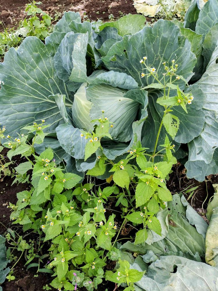 キャベツもハキダメギクも元気ですね💓