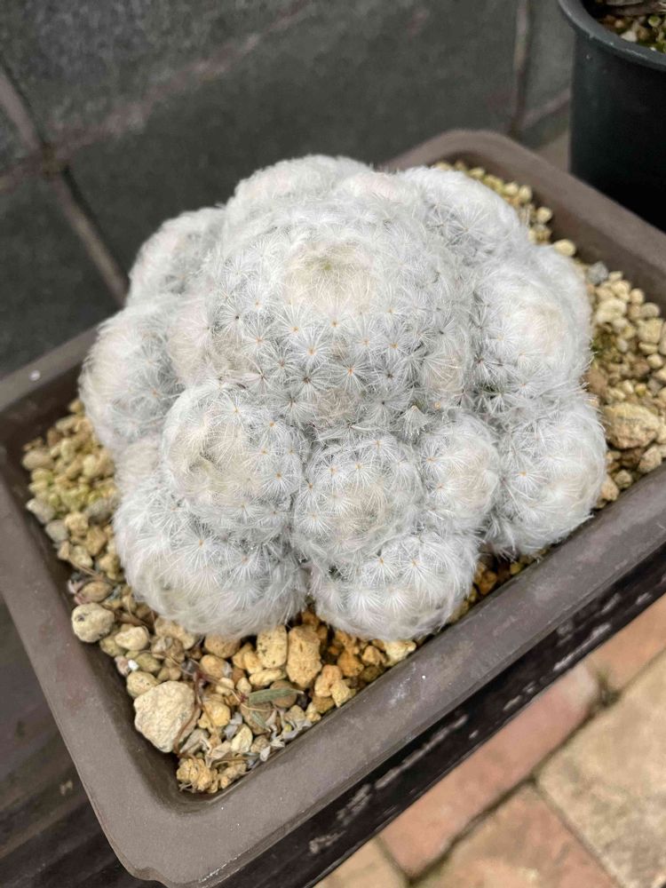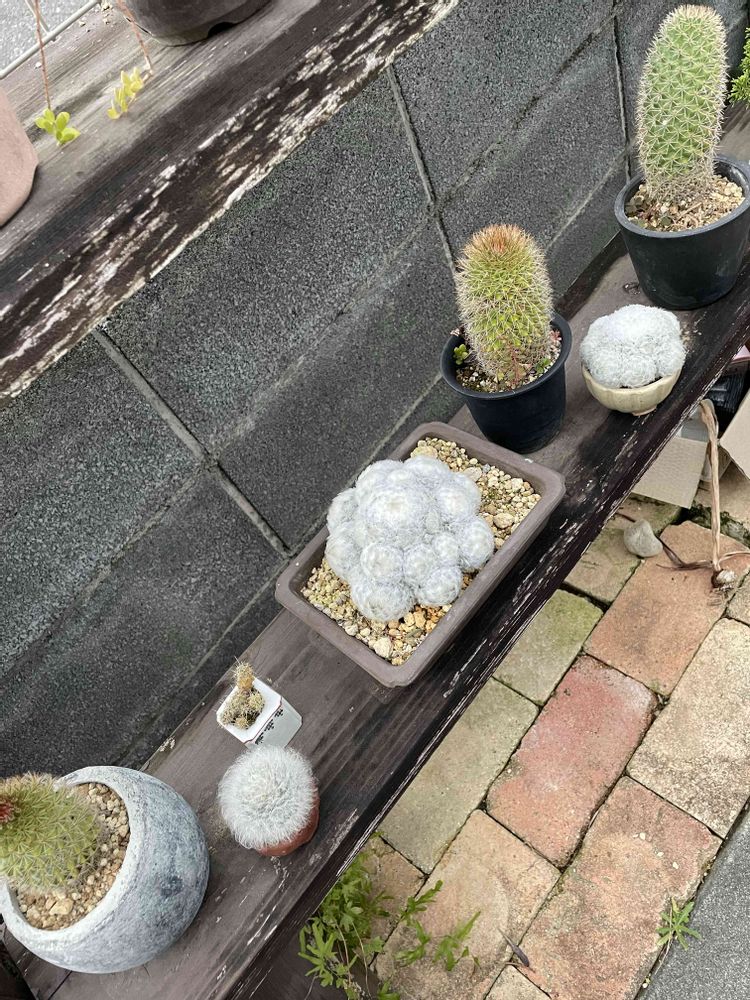 今朝の棚場からはマミラリア白星です⭐️ナウシカの温室みたいにしたいなぁと大きく大きく育てて6年目です。