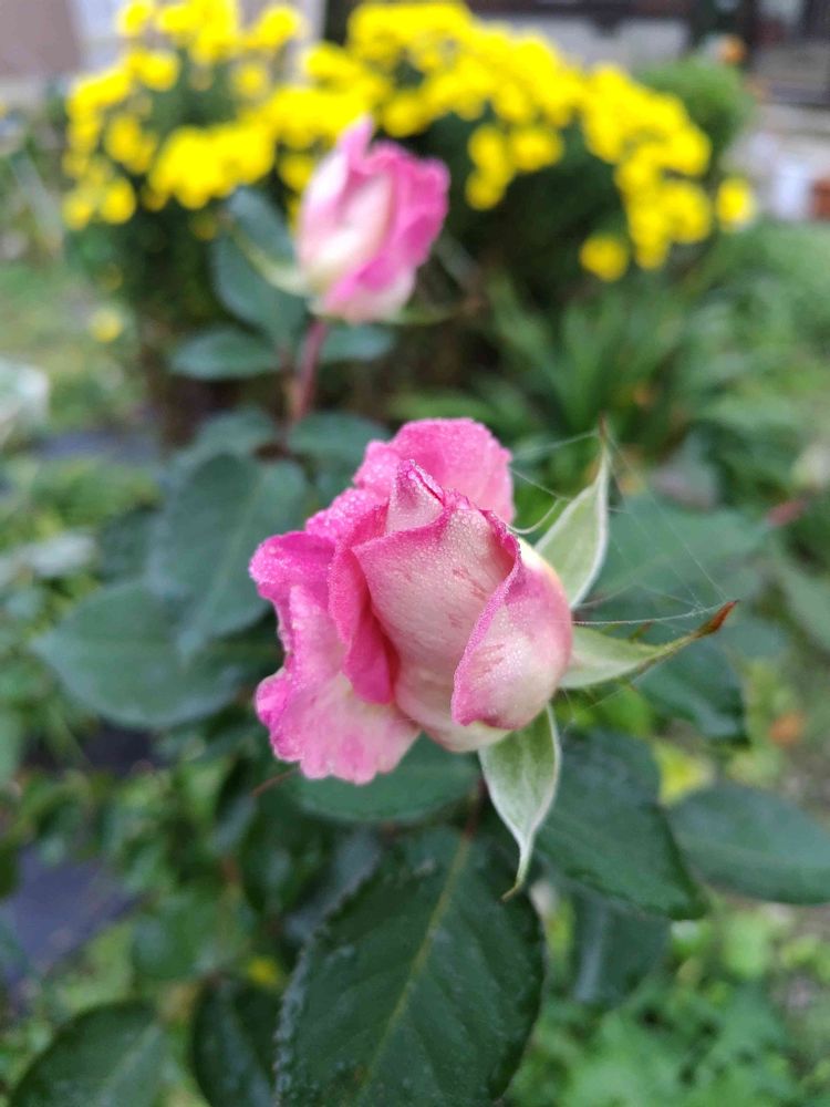 もうすぐ雪が降るのに花芽をつけました 淡いピンクのバラだったのにピンクに白が〜不思議 寒いから開かないのかな〜◌*⃝̥*❊。(。◕‿◕。)