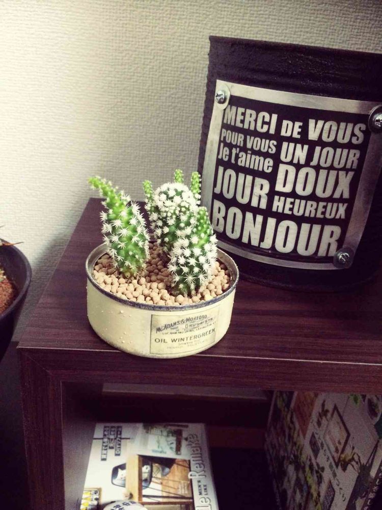 サボテンも白いリメ缶も可愛い❤︎キュン