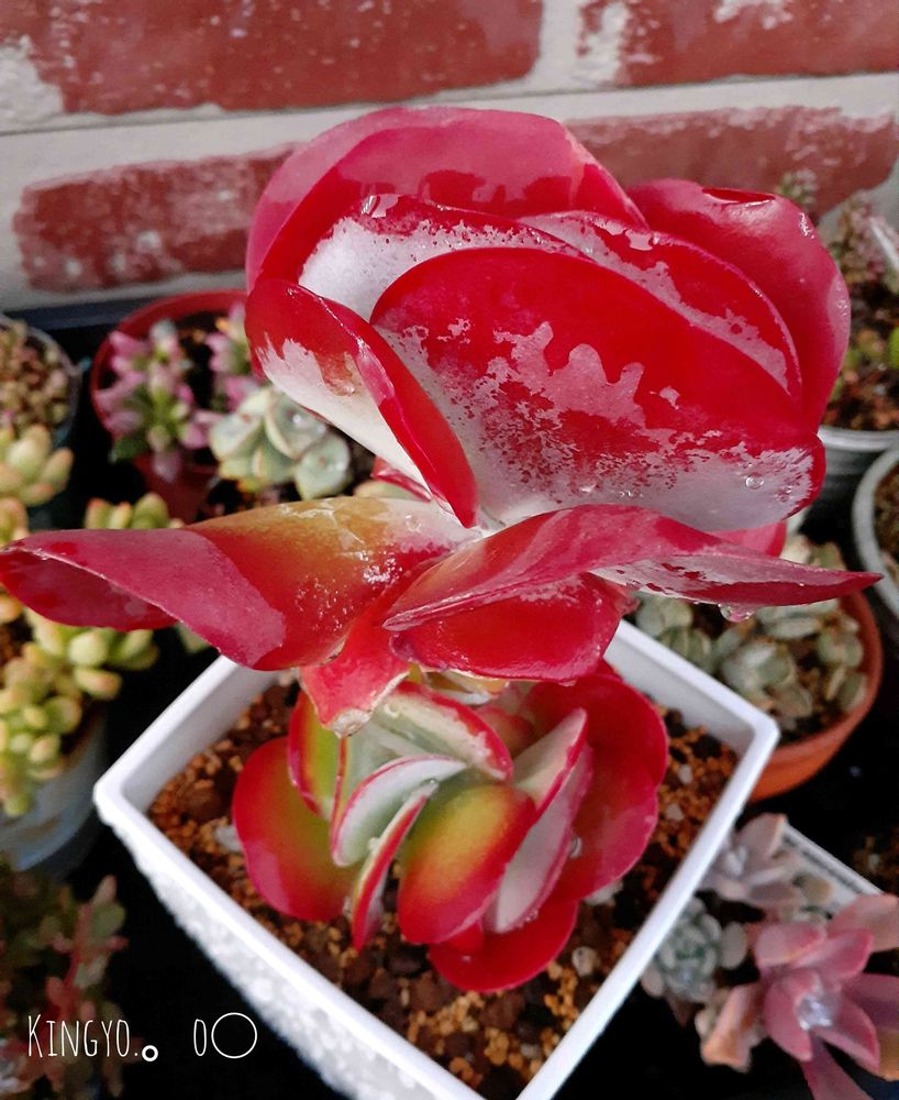 夕方多肉、バラの様に赤くなった《デザートローズ》