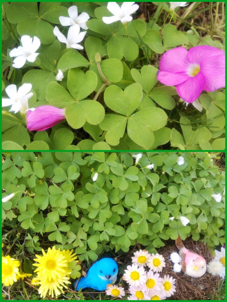 ③白いオキザリスに、別の場所に咲いた大きめの花カタバミ🌸置きました(*ˊ˘ˋ*)