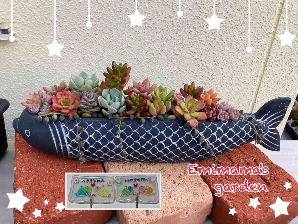 先月2回目セミナーの🐟魚鉢の多肉寄せ植え♪