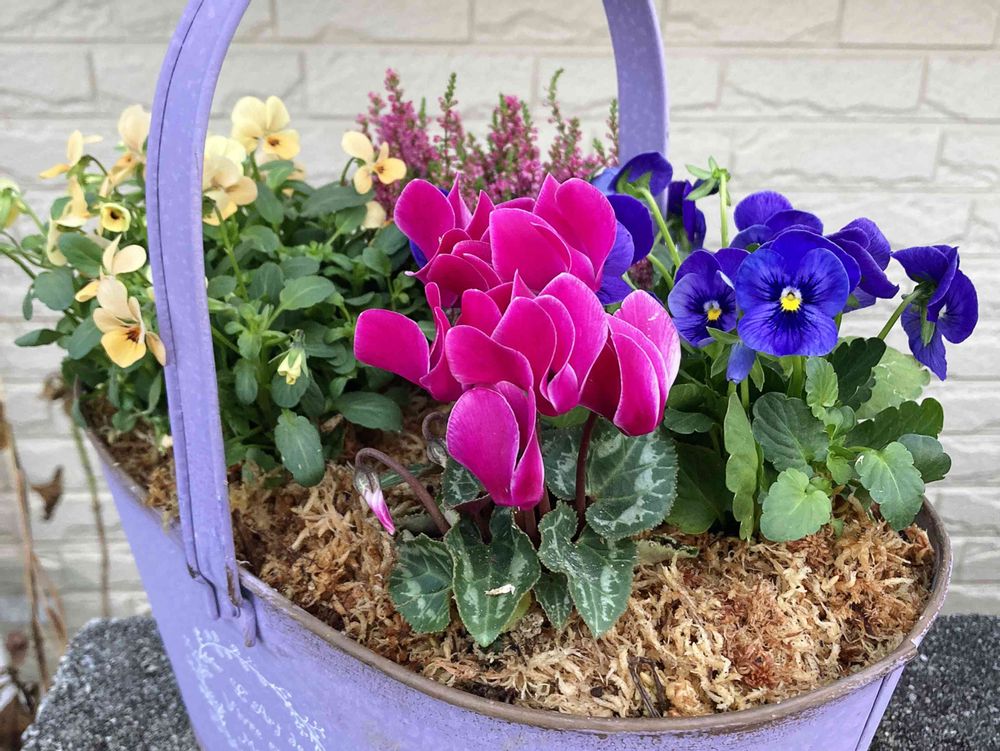 パンジーやビオラは大きくなるのでそれを考えてシクラメンが隠れない様に🪴寄せ植え~