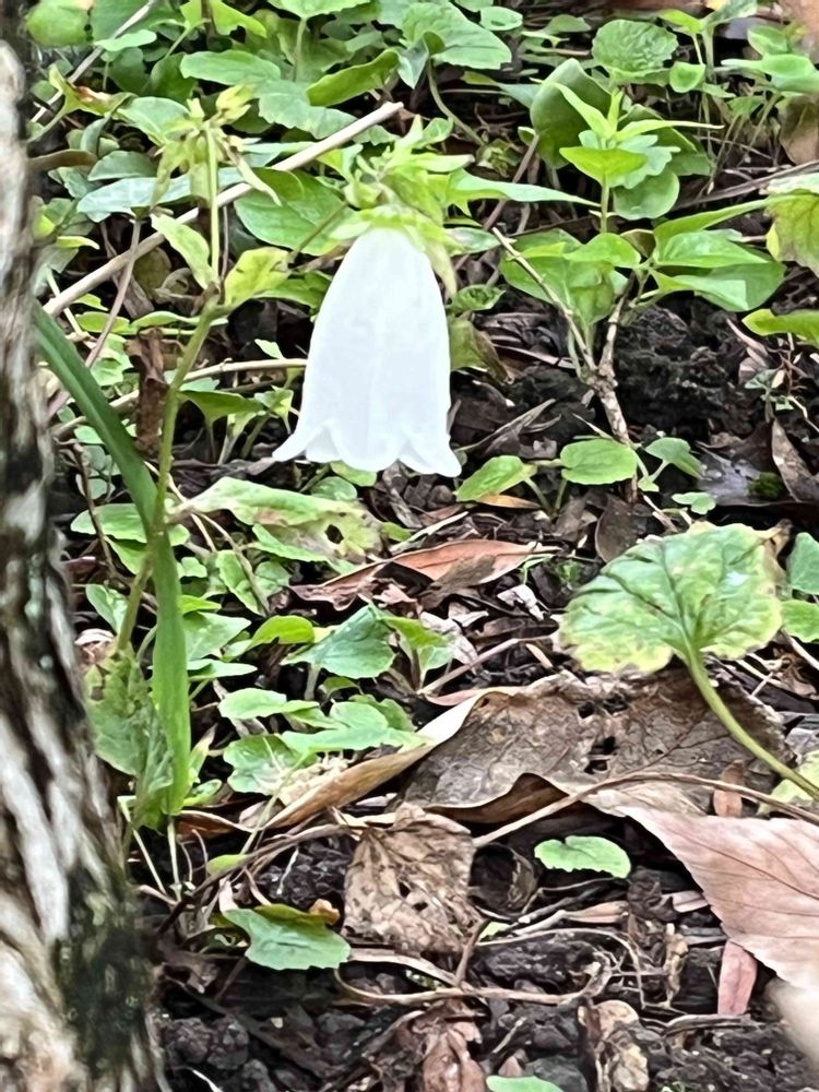 庭に季節離れのホタルブクロが一輪咲いています🤗