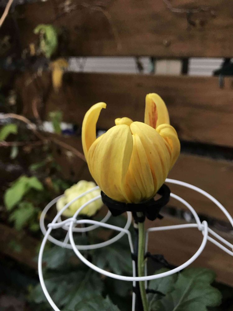 シェード(短日処理)をしていないため、まだ開ききっていません。途中の経過も綺麗です 今日は菊の先生のハウス訪問です。楽しみです。