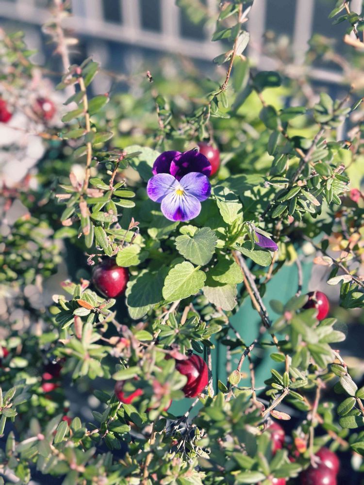 次女ちゃんが「クランベリーちゃんのお花初めて見たぁ〜!」と言ってました😂このビオラがクランベリーの花だと思ってるー笑