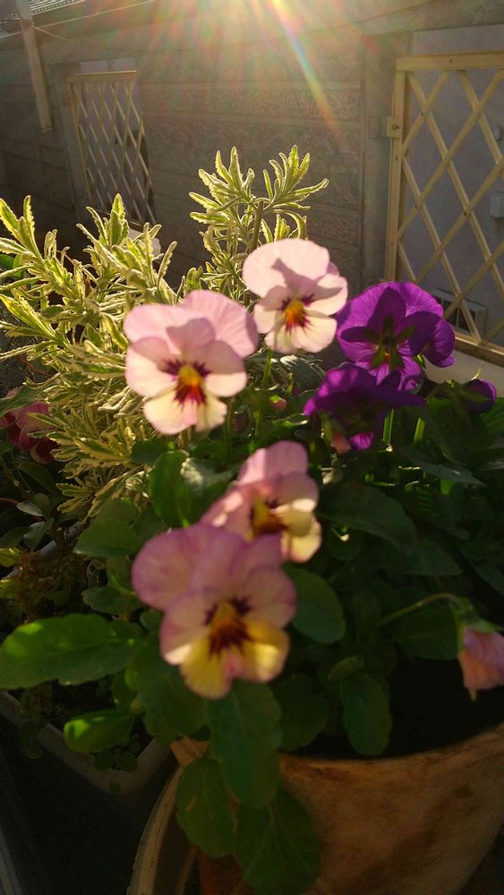 ビオラ,ラベンダーメルロー,朝日の中での投稿画像