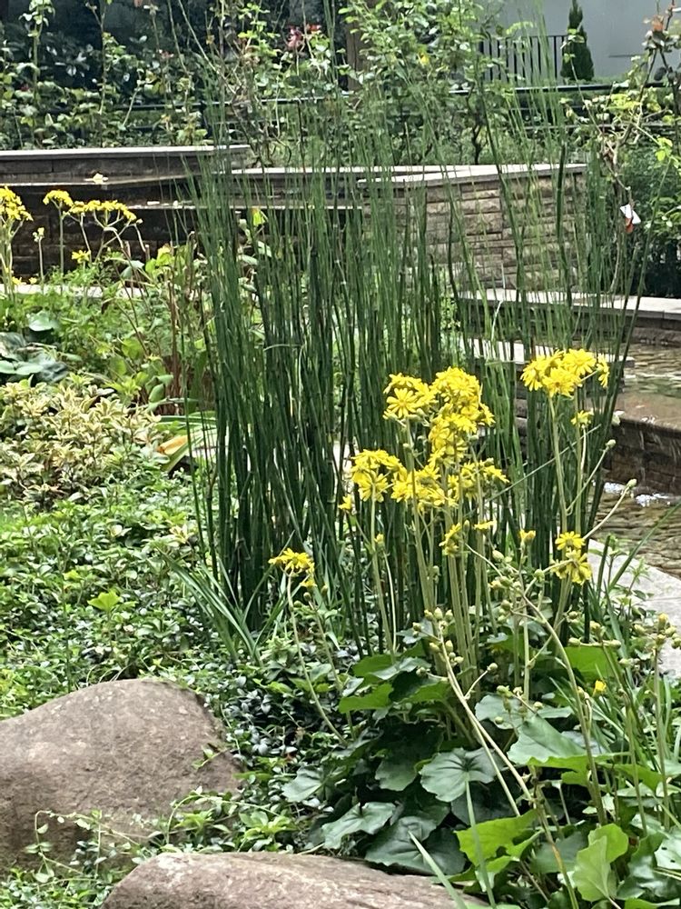 丸の内ブリックスクエア ガーデンで「ツワブキ」が咲き始めた。