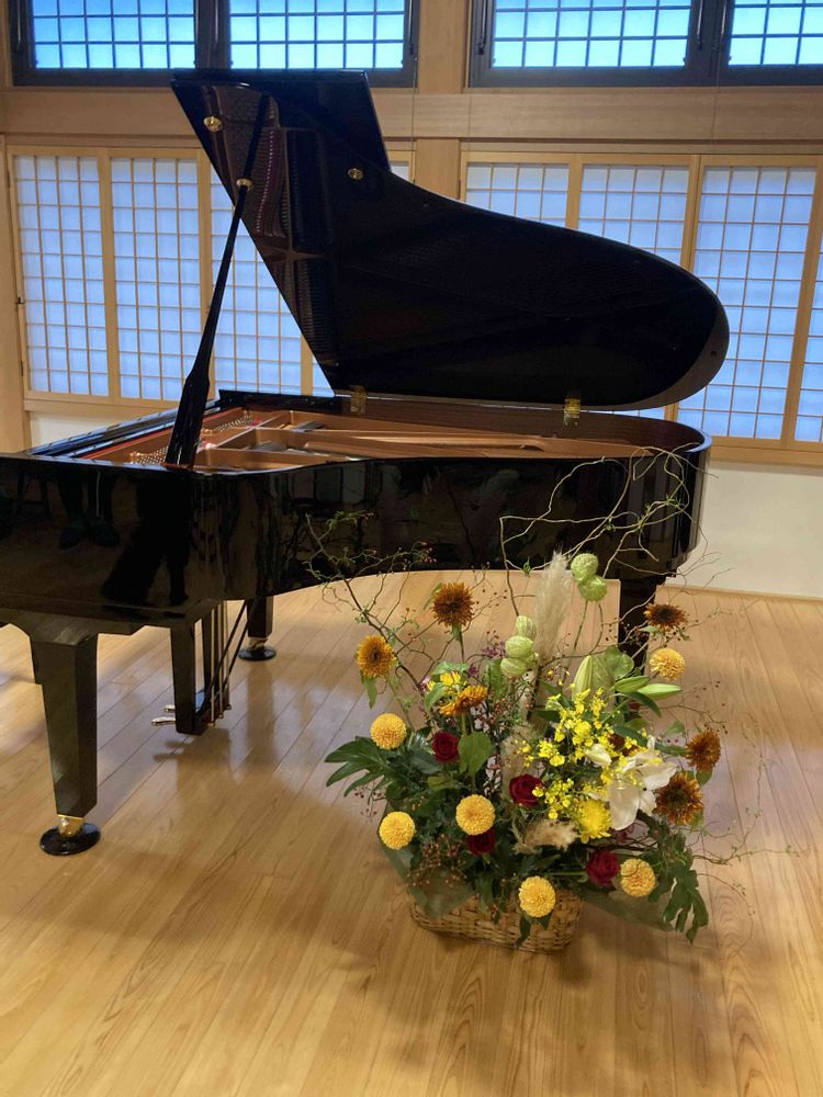 私もピアノの前の立派な盛花写真に納めてまいりましたよ。
