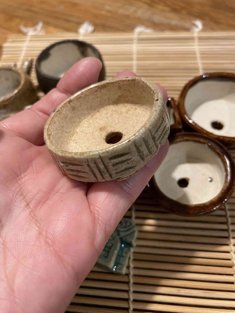 最近、山野草を始めました。旦那は盆栽、私は下草を学び始めました。 自宅で陶芸しています、豆鉢など作っています。の
