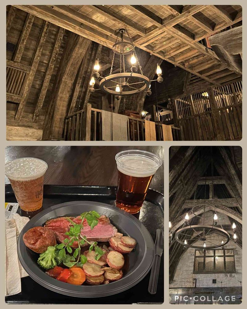 そして最後は街の中にあるレストラン「三本の箒」で食べたローストビーフ🥩一緒に写っているのは左がバタービール🍺で隣りが本物の🍺😂💕
