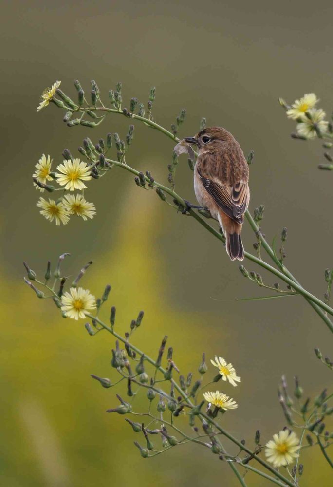 黄色い花がたくさんある茎に止まってくれてよかったです😊