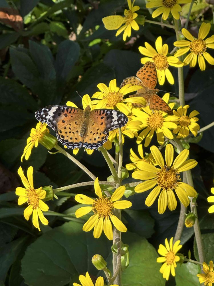 少ないお花に蝶🦋がヒラヒラ飛んできて蜜を吸ってる姿をしゃがみこんでじっと見てました。癒される〜💕