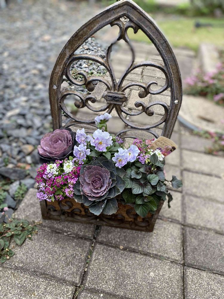 落ち着いた色合いが アイアンっぽいプランターに馴染んでいて素敵ですね💕︎