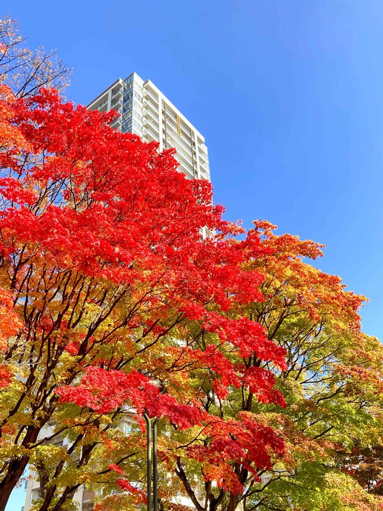 十勝・紅葉狩り🍁の旅🚗💨⑨札幌・大通公園⛲️✨澄み切った秋晴れの青空に真っ赤な紅葉が映えるポカポカと日でした☀️3週間程前のpicです📸