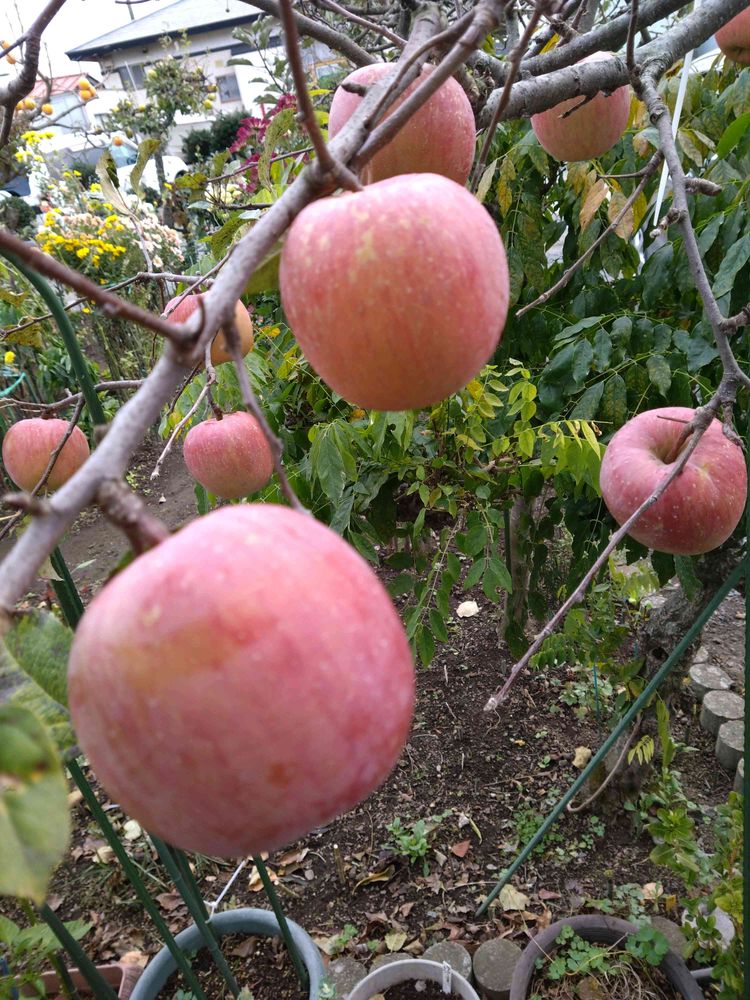 良いなぁ リンゴの木がほしいなぁ 赤い実がなってるだけで幸せな気分になりますホント 良いなぁ ってか 1本の木に数種類接ぎ木して出来るんですね