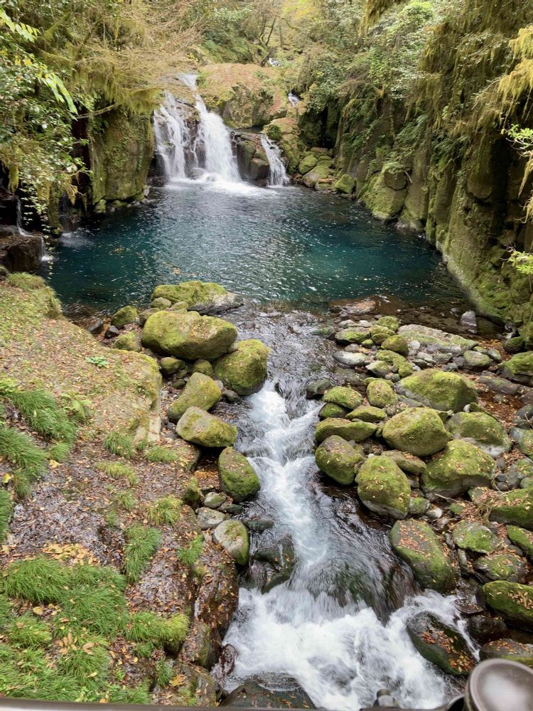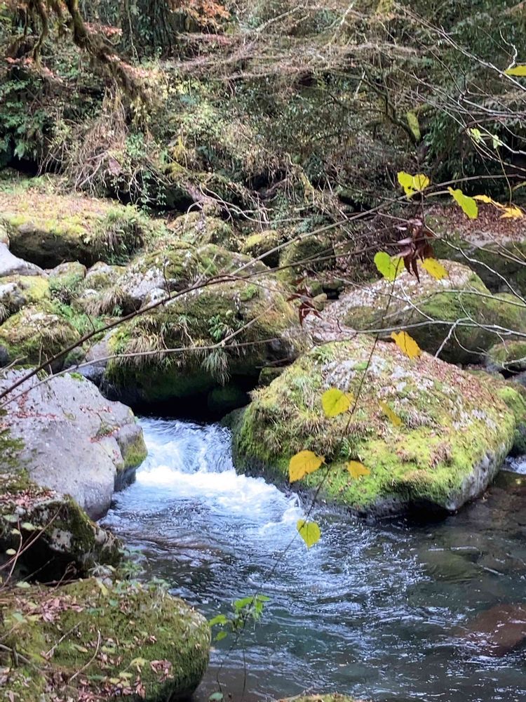 滝や川を見ながら遊歩道を散策し、沢山の岩やあちこちに群生している苔、ツタ、地面からニョキニョキ出ている木の根っこなどに感動✨😆✨自然を満喫しました💕そんなに歩いてないのに筋肉痛です🥺