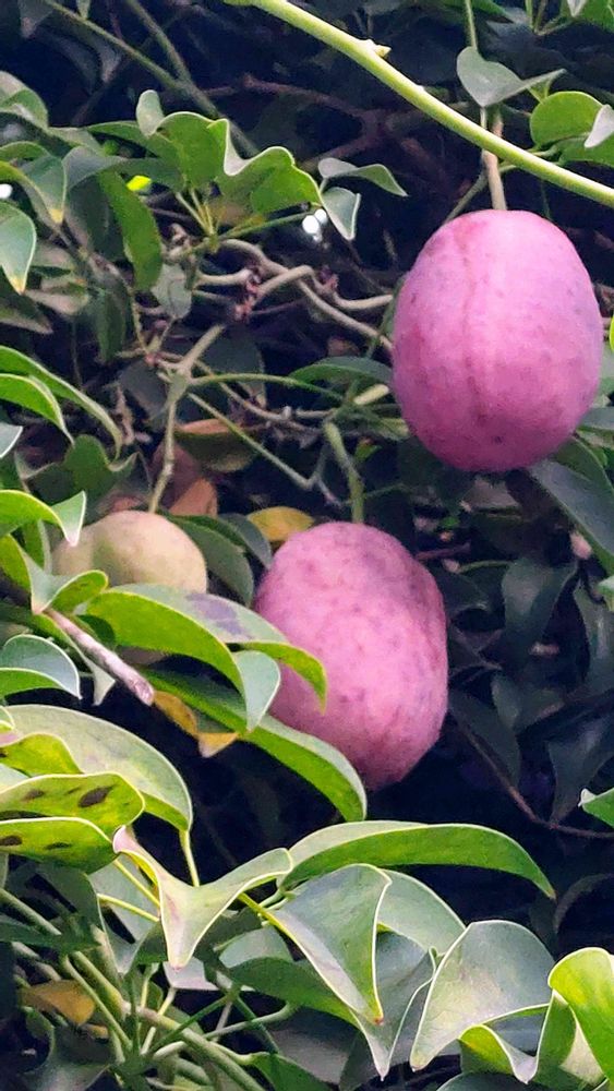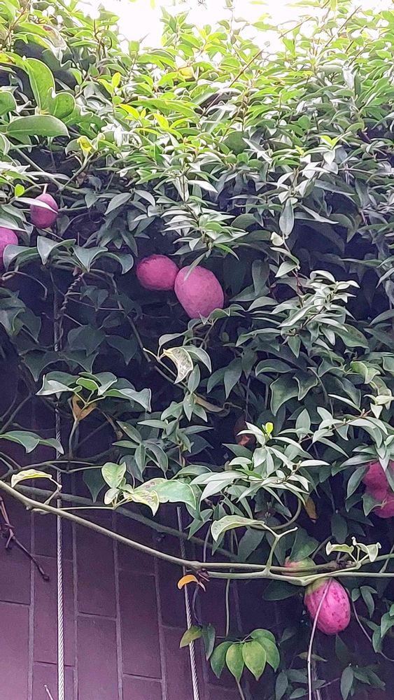 以前「アケビ」と思い投稿した「ムベ」ですね🤗私が見た頃はまだ緑🟢色でした。