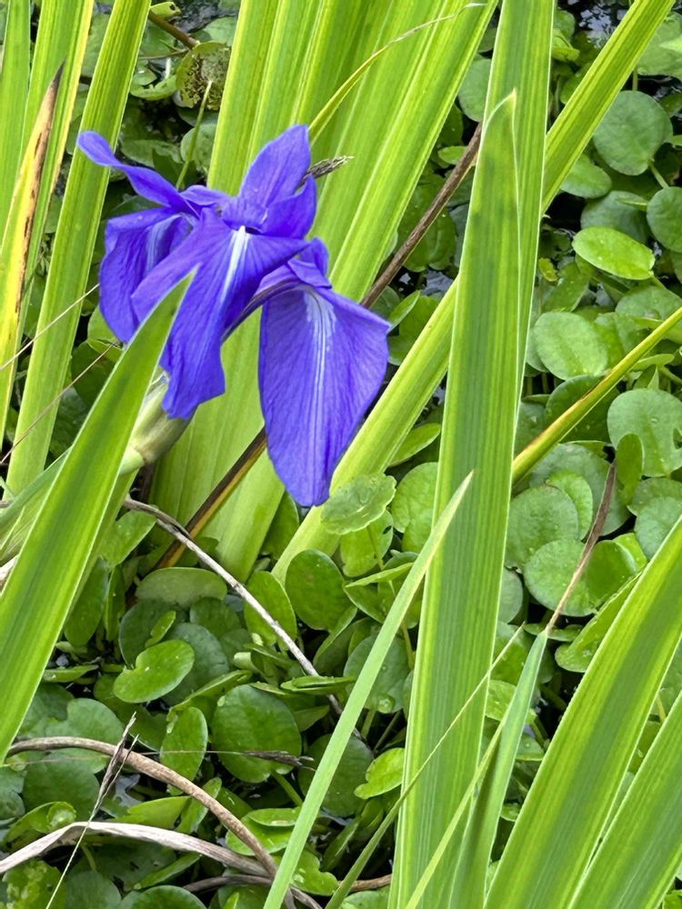 いつもの散歩公園にカキツバタが2輪咲いていました🌿💙🌿