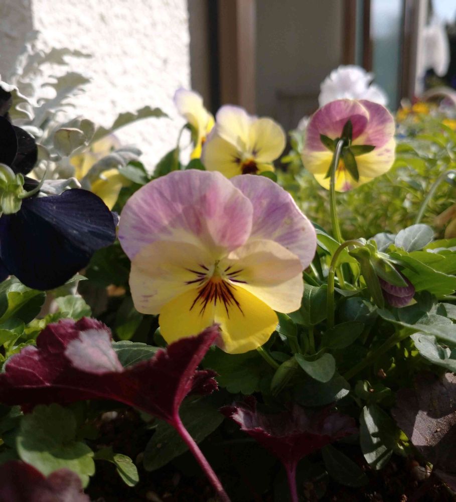 左隣のヒューケラ(ドルチェ?だったかな)と馴染みつつ、左後方のblackのビオラに自然に繋がる色の組み合わせにしました😊
