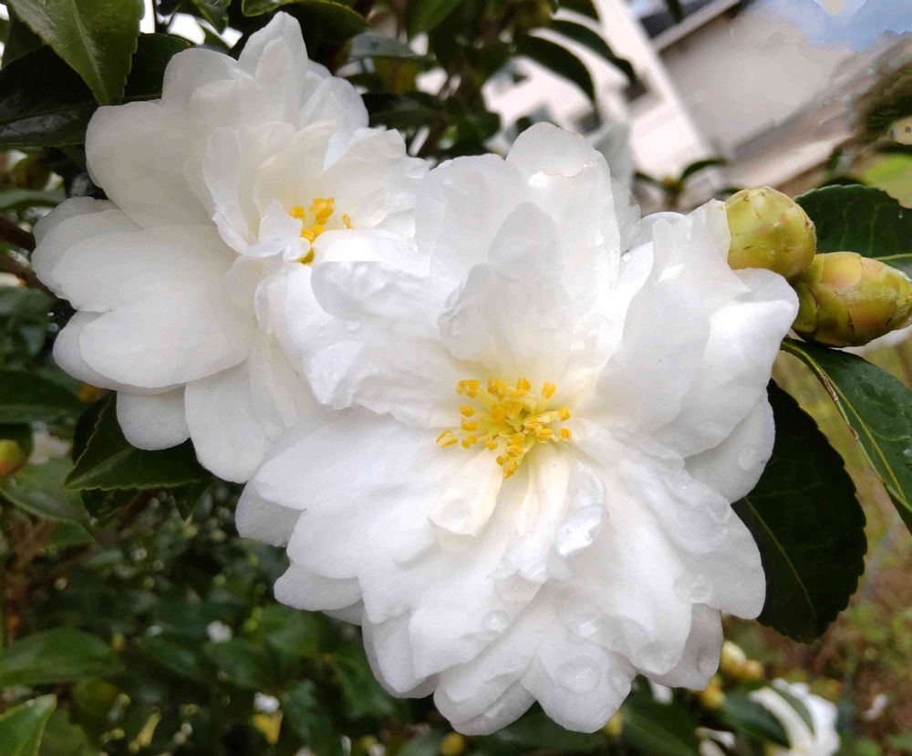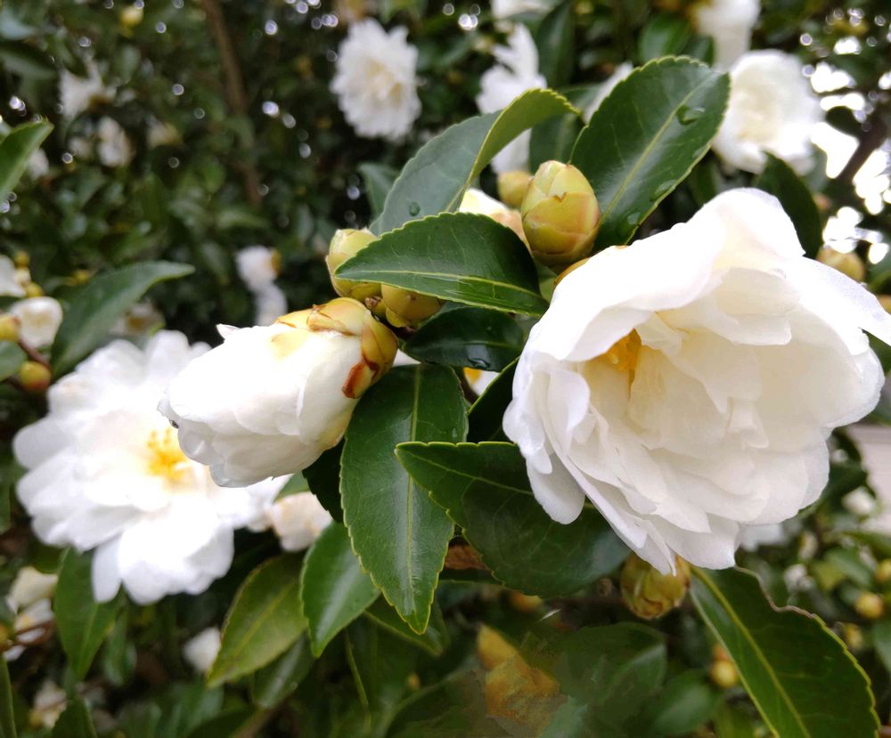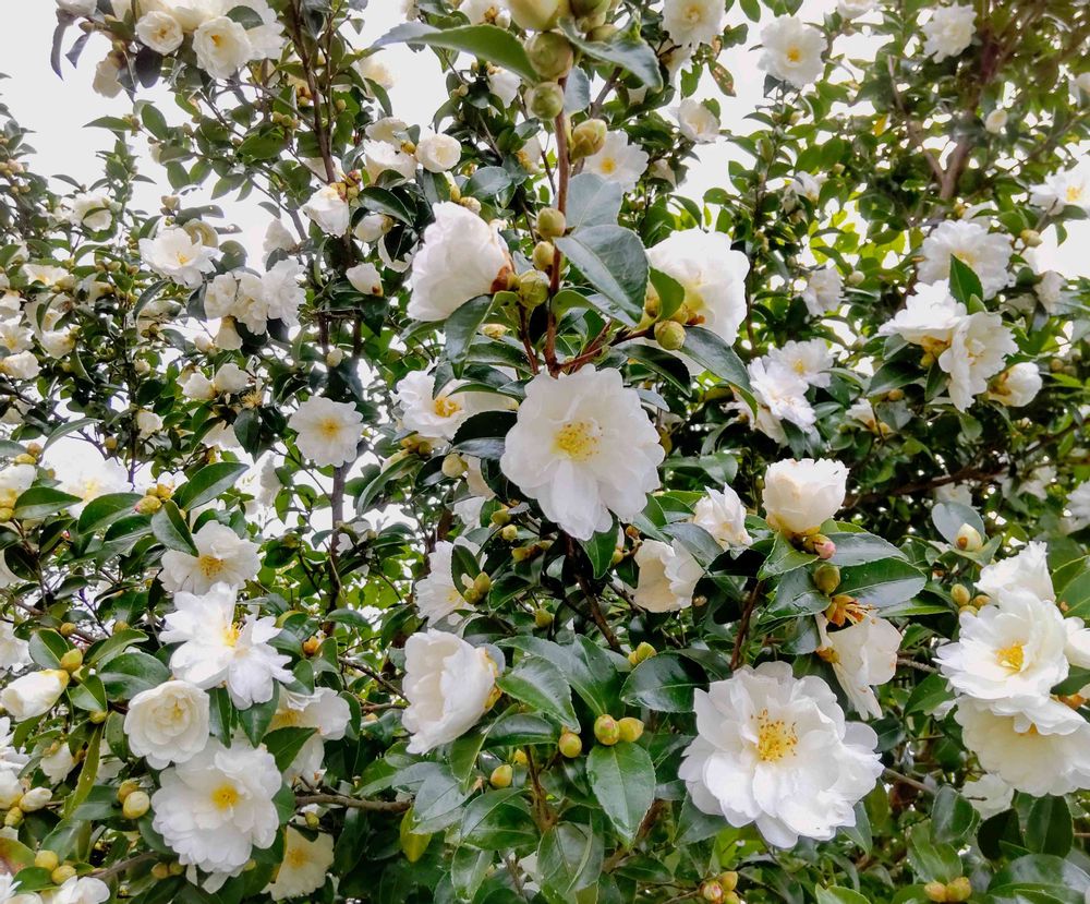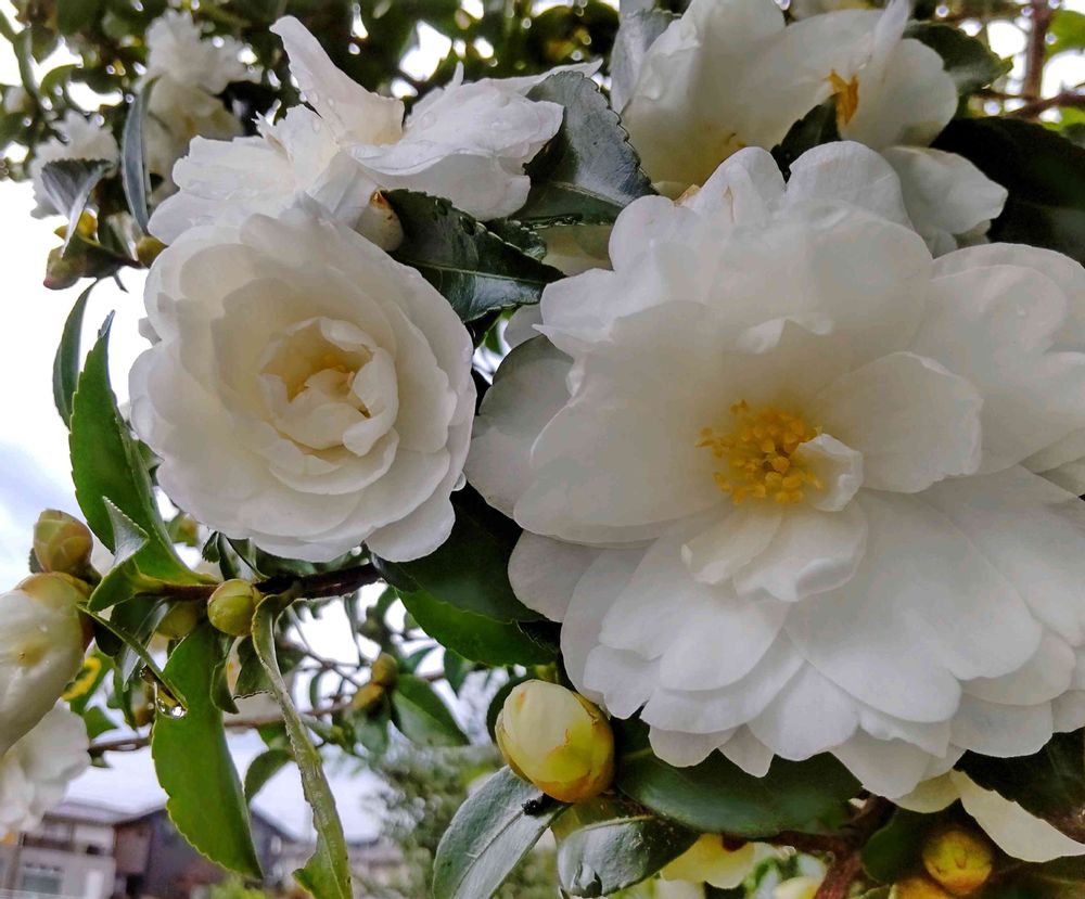 昨日☁、用事での道のりの 真っ白な山茶花🤍🌼🌼