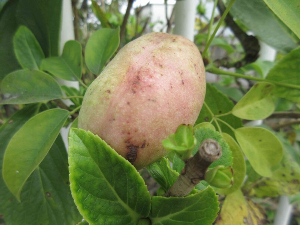 今日の花(実)検索して見ると色がついて食べごろになってもアケビのように実が割れないそうです 散歩中にポチッ!美味しいのかしら?