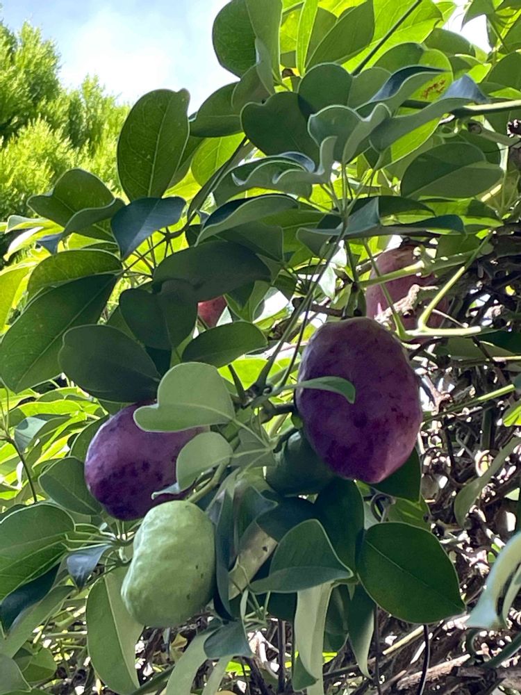 少し前までまだ青かったムベの実が暗紫色に変わってきました