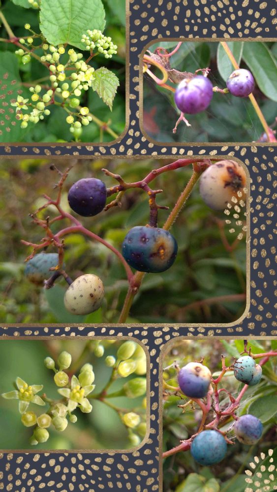 まばらになってしまいましたが、ノブドウの実が色付きました✨🔵🟣✨
