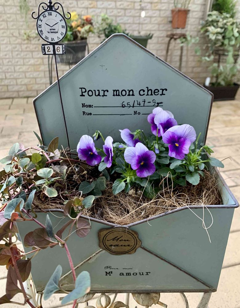 ビオラさんに、レター鉢がとってもお似合いですねෆ.*・゚