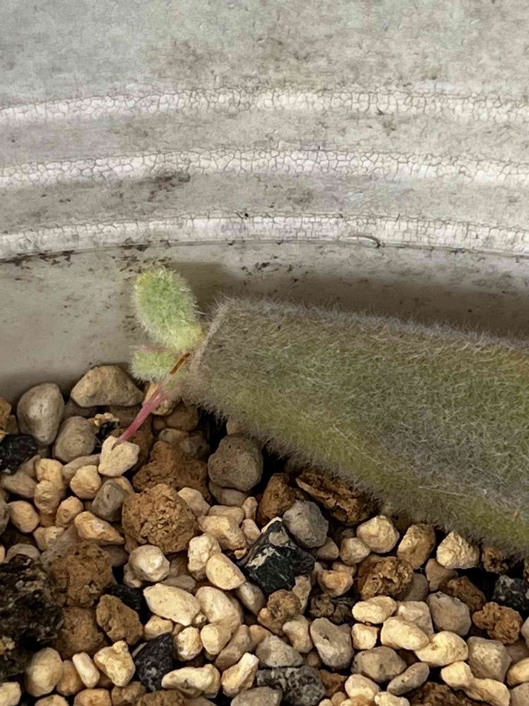 月兎耳ちゃんの葉挿しは簡単と聞いたけど、今まで1度も成功した試しがなかったんだけど、今回、取れた葉を置いてたらちっちゃなベビーちゃん😍